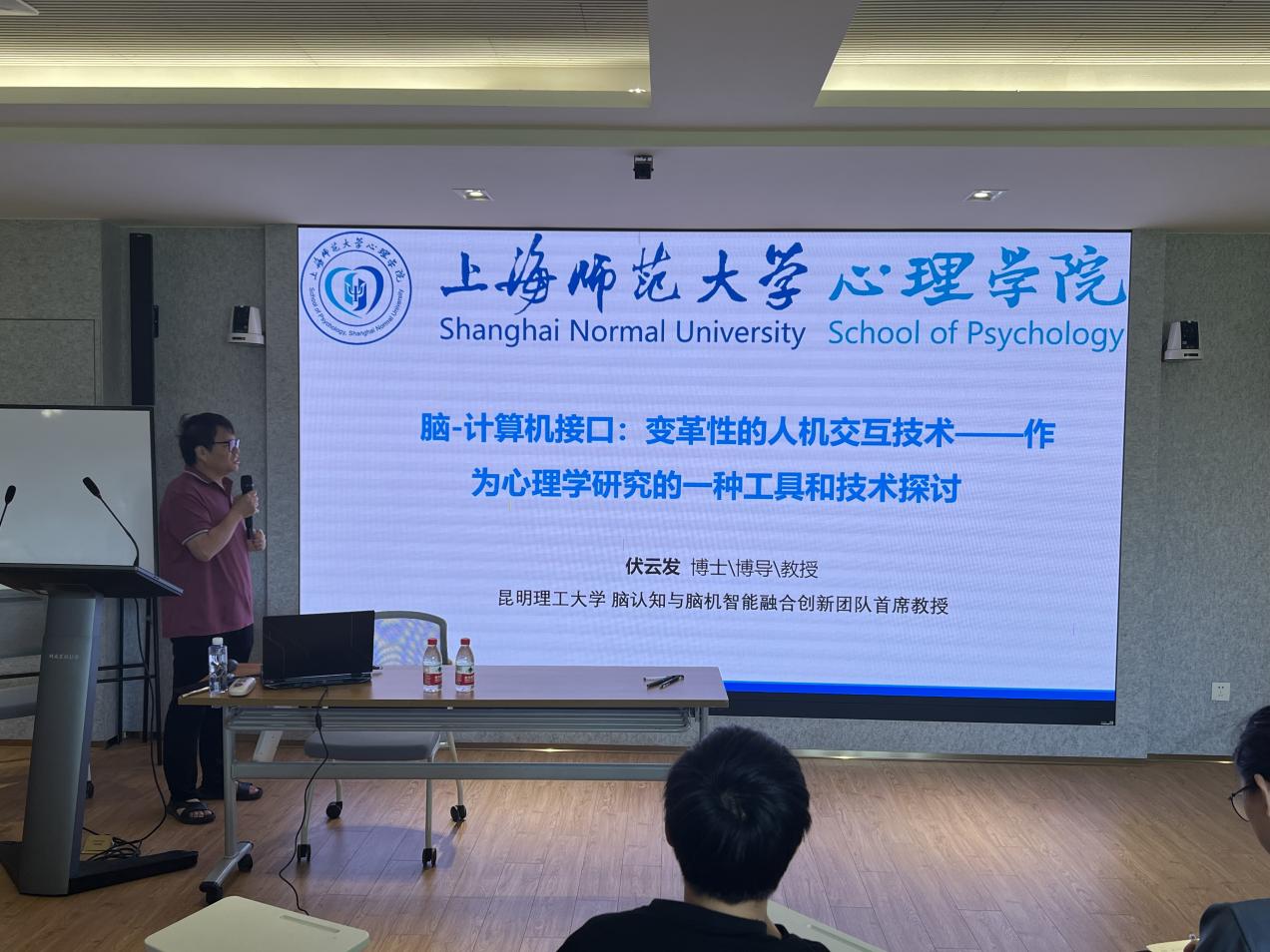 4月25日上午,昆明理工大学伏云发教授于徐汇校区东部教苑楼D401应邀为yl23411永利集团官网的师生们带来题为《脑-计算机接口:变革性的人机交互技术——作为心理学研究的一种工具和技术探讨》的主题报告。此次活动由yl23411永利集团官网副院长罗俊龙教授主持。