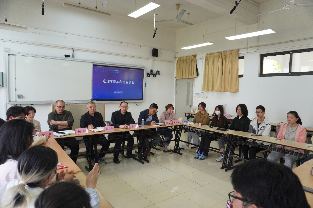 与会老师认真聆听和记录,逐一回应学生的关切,并介绍了学院在培养方案修订、建立学术导师制、专业认同教育、行业导师分享、本科生科研能力提升等方面的行动和计划。蔡丹书记在总结讲话中表示,学院全力支持本科生学习学术发展和学风建设,努力创造条件满足本科生学习、实践和研究需求,强调对学科的热爱和投入是关键,当前专业学习中的一些困惑和矛盾可转化为学习动机,希望同学们潜心问学,在实践应用中发挥心理学作用,实现自我价值。