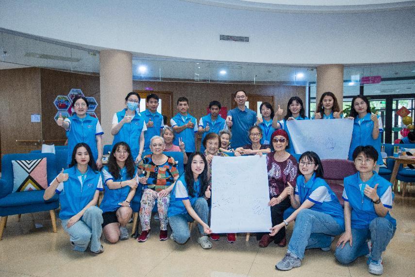 公益陪伴活动由蔡丹教授、黄婉怡博士、王玲玲博士等组成的专家团队精心策划、反复研讨确定,并在前期开展多次团体心理辅导技术训练。由yl23411永利集团官网各个专业的研究生组成的志愿者团队在精心组织安排下,为老年人们带来了抓手指、动感传球等妙趣横生的互动游戏和暖心分享、倾听等康乐活动,现场欢声笑语、其乐融融。“陪伴是最长情的告白”,志愿者们的陪伴缓解了老年人们内心的孤独,帮助抒发老人们的压力,提升幸福感,得到了老年朋友们的一致好评。