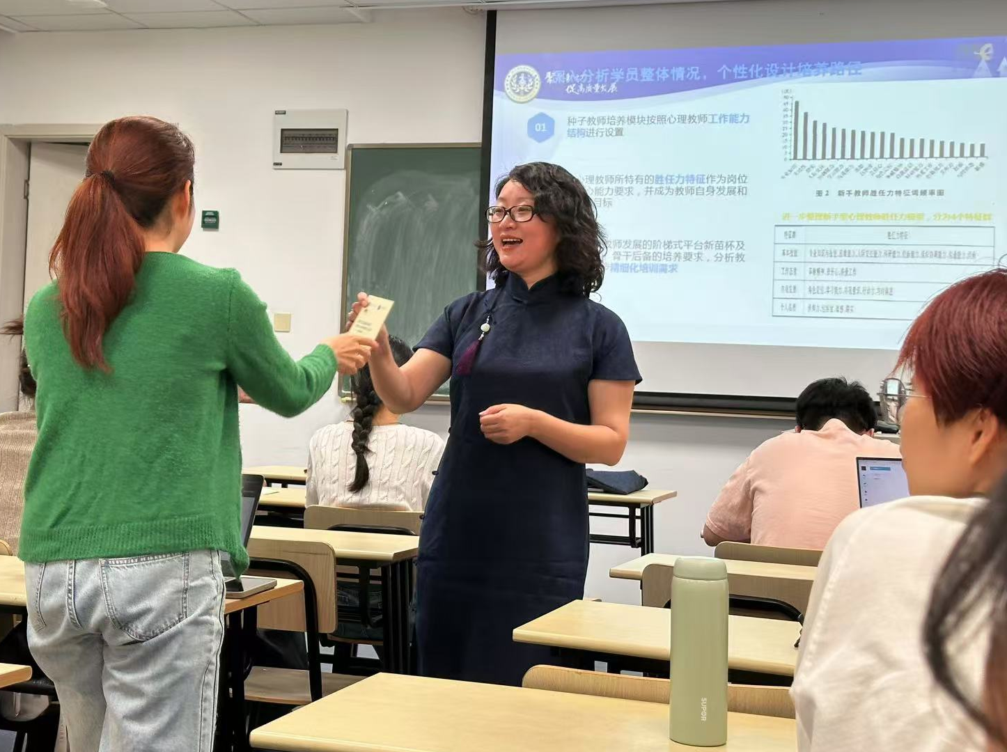 在交流互动环节,同学们向陈滢博士请教了学校心理健康教育教师的胜任素养、如何开展ADHD儿童早期识别等相关问题,陈滢博士逐一给出了详细解答,并把自己在ADHD领域取得的阶段性成果——ADHD指导手册作为小礼物送给大家。本次讲座不仅让同学们明确了职业方向,坚定了职业理想,而且也为学院师生未来从医教家社协同这一新视角开展学校心理健康教育和研究工作提供了重要启示。