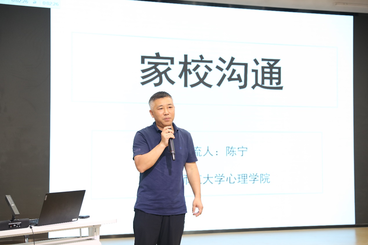 开班仪式之后,陈宁教授开展了第一堂专题培训讲座《明星教师成长之路—小学骨干教师职业生涯规划》,从教学相长和教研相长角度引导学员教师们确立且坚定自己的教学理念。通过丰富生动的教育教学实践案例和科学研究成果,帮助学员们更好地明晰教育的真谛和教师的使命。