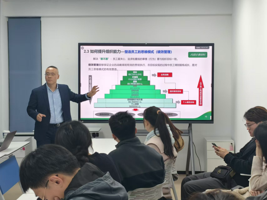 接着,李总通过大家熟知的西游记中师徒四人的故事启发同学们头脑风暴,共同研讨高绩效团队的典型特征。最后,李总从三个方面详细阐述了企业如何提升组织能力,进而实施有效的绩效管理手段,推进公司战略执行,最终实现企业与员工“双赢”。