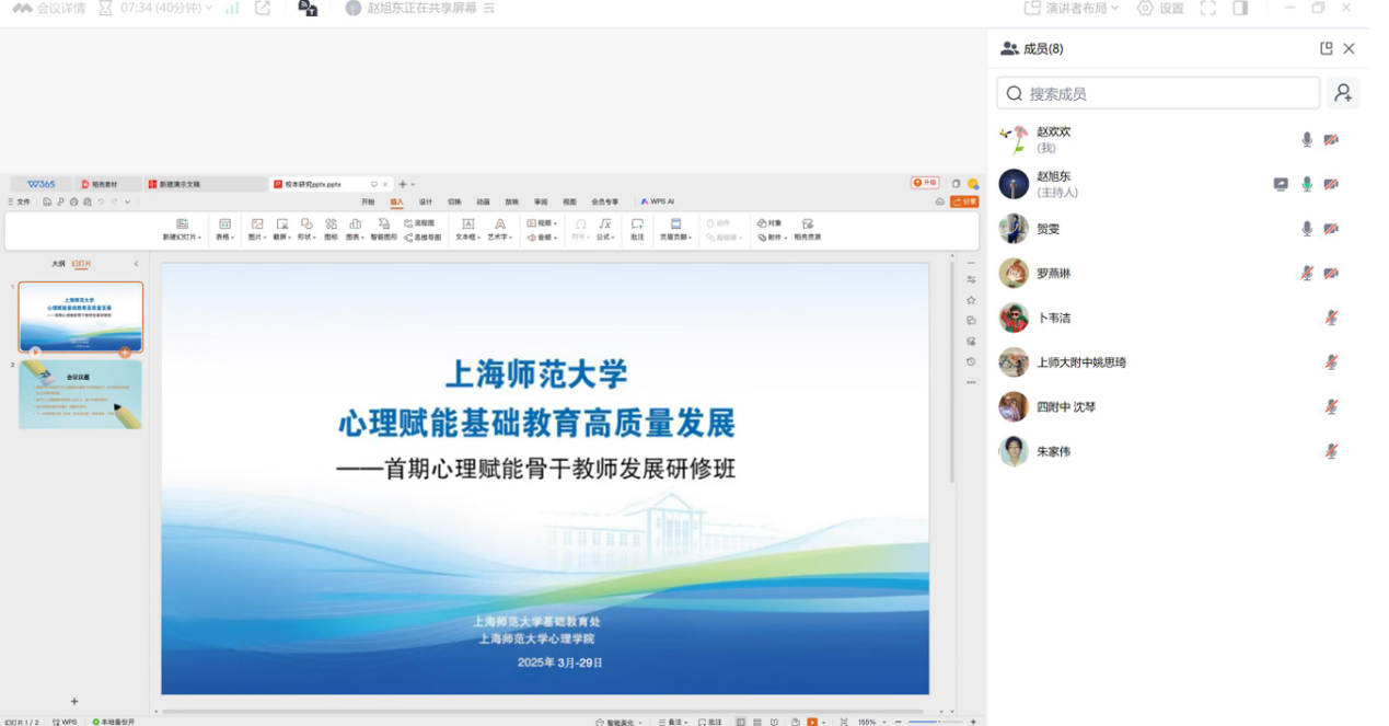 高中组专题研讨分别于3月24日、3月29日在线上举行。3月24日,上师附属高中的教师们表示,随着高中教育改革的不断深入,学生们面临着前所未有的学业压力。部分学生在长期的学习压力下,出现了情绪耗竭、去个性化、低成就感等学业倦怠症状,尤其在毕业班学生中,考试焦虑现象尤为突出。同时,名额分配政策的实施也让部分重点高中的学生感到了能力的落差,而职校学生则因AI技术的快速发展而感到未来职业前景的不确定性,产生了“学历无用”的观念。针对这一系列问题,陈宁教授提出了加强入学适应教育、期望管理、激活策略及跨领域融合等应对措施,旨在帮助学生更好地适应高中生活,减轻学业和心理压力。一线教师则分享了各自在应对学业倦怠和考试焦虑方面的实践经验,如建立学生数据库、实施个性化辅导方案、开展全员导师制等。3月29日召开了第二次高中组专题研讨会,上师附属学校的老师们分享了高中生在成绩落差、人际交往及生涯规划等方面面临的挑战与应对举措。与会教师结合自己的教学经验,探讨了如何帮助学生更好地适应高中生活,提升综合素质。贺雯教授针对高中生心理健康问题,特别是非自杀性自残行为进行了深入剖析,从心理学理论出发,分析了这一现象背后的原因与机制,并提出了针对性的干预建议。她强调,学校应加强对家庭教育的指导与支持,共同构建家校协同的心理健康干预体系。