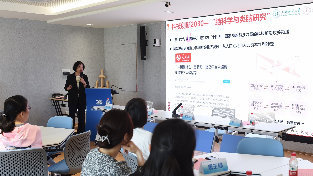 科技部重大项目负责人李丹教授详细介绍了“中国学龄儿童脑智发育研究”项目的背景、研究内容及重要价值,为教师们开拓了前沿科研视野,并诚邀教师们积极参与该项目的研究。