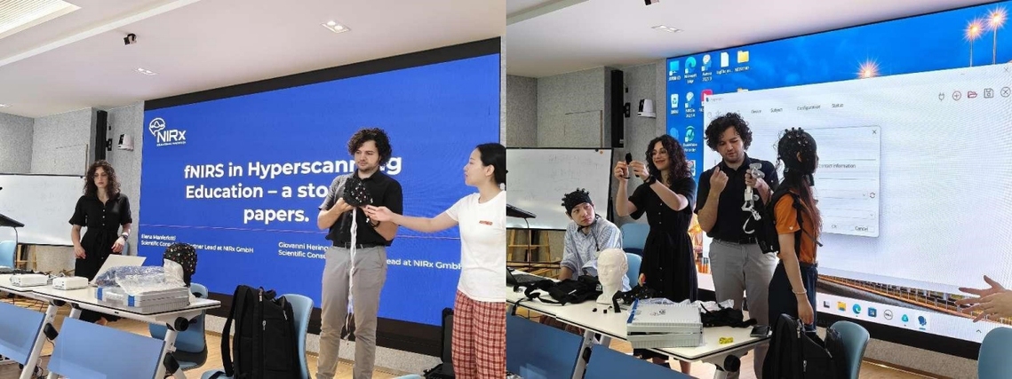 5月16日上午,心理学实验教学示范中心举办近红外超扫描技术的专题培训,邀请德国厂家工程师作现场报告与实操演示,并围绕教育神经科学领域的最新研究进展与技术应用进行深入交流,学院师生广泛参与。