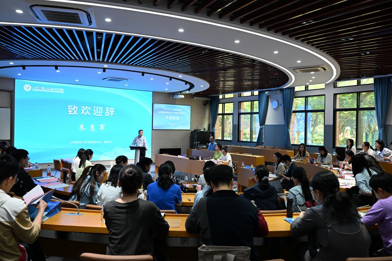 朱惠军作开班致辞。他指出,作为上海市心理健康教育工作的重要支撑单位,学校已连续十年承办中小学心理健康教育骨干教师高级研修班,累计培养骨干教师400余名,这既是市教委及各区教育单位对师大育人能力的高度认可,更是一份承载着时代重托的育人使命。当前社会青少年心理健康问题日益凸显,希望全体学员能在学习中不断提升专业本领,为中小学学生心理健康成长保驾护航,并为心理健康教育工作注入强劲的示范动能。