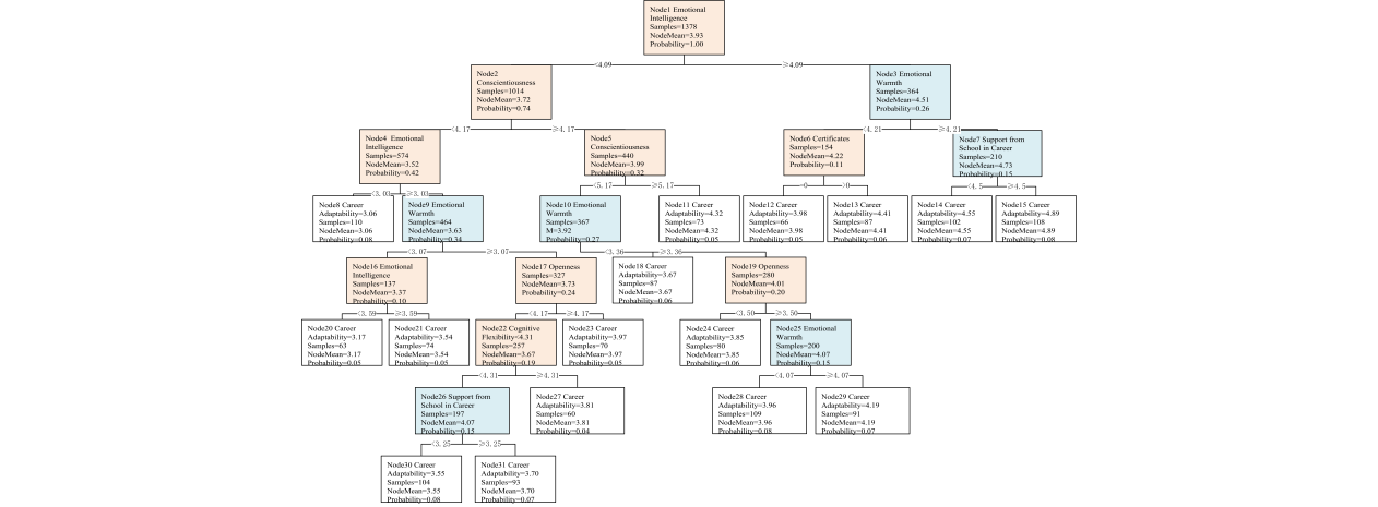 论文信息:Li, X., Tao, W., Zhang, J., Luo, J., Cai, Y., Deng, M., Hou, L., Yang, Y., Xu, D., Wang, G. and Shi, W. (2025). Regression tree analysis of factors influencing career adaptability in college students. Education + Training.