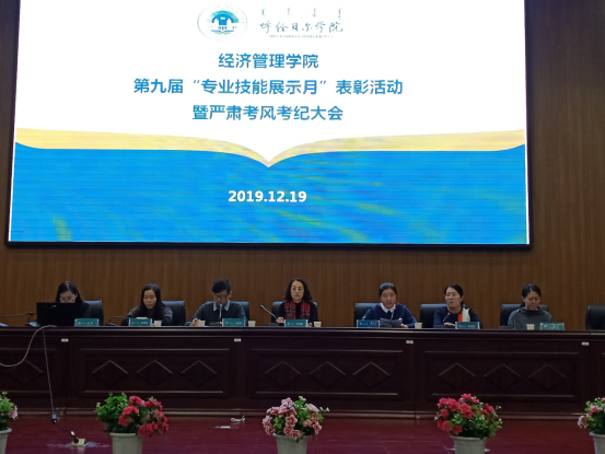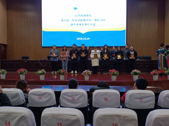 2019年12月19日,在图书馆四楼报告厅Beat365中文官方网站举办“第九届专业技能展示月表彰活动暨严肃考风考纪大会”。经管学院院长李雪峰、副院长刘启云、王英利,各系主任、教研办主任、办公室主任、团学办公室主任及各位辅导员、班主任参加了大会,王英利副院长主持大会。