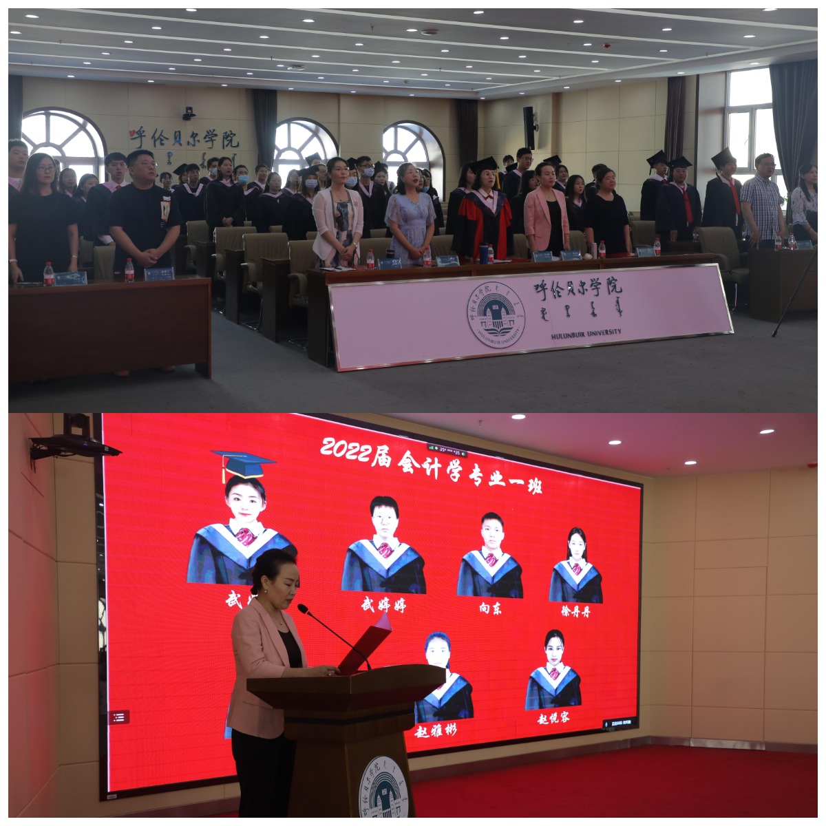 毕业典礼在庄严的国歌声中拉开帷幕。学院班子领导宣读学位授予名单及2022届自治区级和校级三好学生、优秀毕业生和优秀学生干部名单,并在线上对五个专业310余名毕业生拨穗正冠。