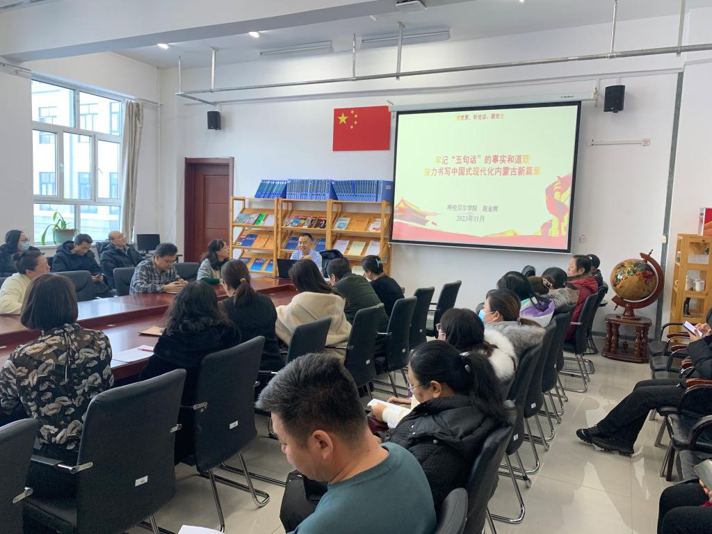 按照《呼伦贝尔学院“ 感党恩、听党话、跟党走”主题宣讲工作安排》要求,为持续深入学习贯彻习近平总书记对内蒙古的重要指示精神,12月13日下午,Beat365中文官方网站特邀请旅游地理与历史文化学院赵金辉书记来我院做主题宣讲,全体教职工参加学习。
