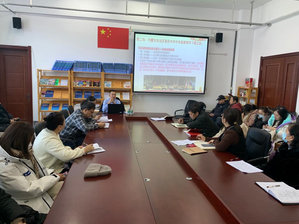 赵书记以“感党恩 听党话 跟党走,奋力书写中国式现代化内蒙古新篇章”为题,围绕“五句话”的事实和道理,从内蒙古儿女始终与党中央保持的血肉联系出发,紧扣《国务院关于推动内蒙古高质量发展奋力书写中国式现代化新篇章的意见》(以下简称《意见》)的精神实质和贯彻落实要求,阐释了《意见》是推动内蒙古经济社会发展的又一次重大政策机遇和历史机遇,在内蒙古发展史上具有里程碑意义,并结合教育教学工作实际,就《意见》的总体要求、七项重点任务和若干保障措施进行了解读。