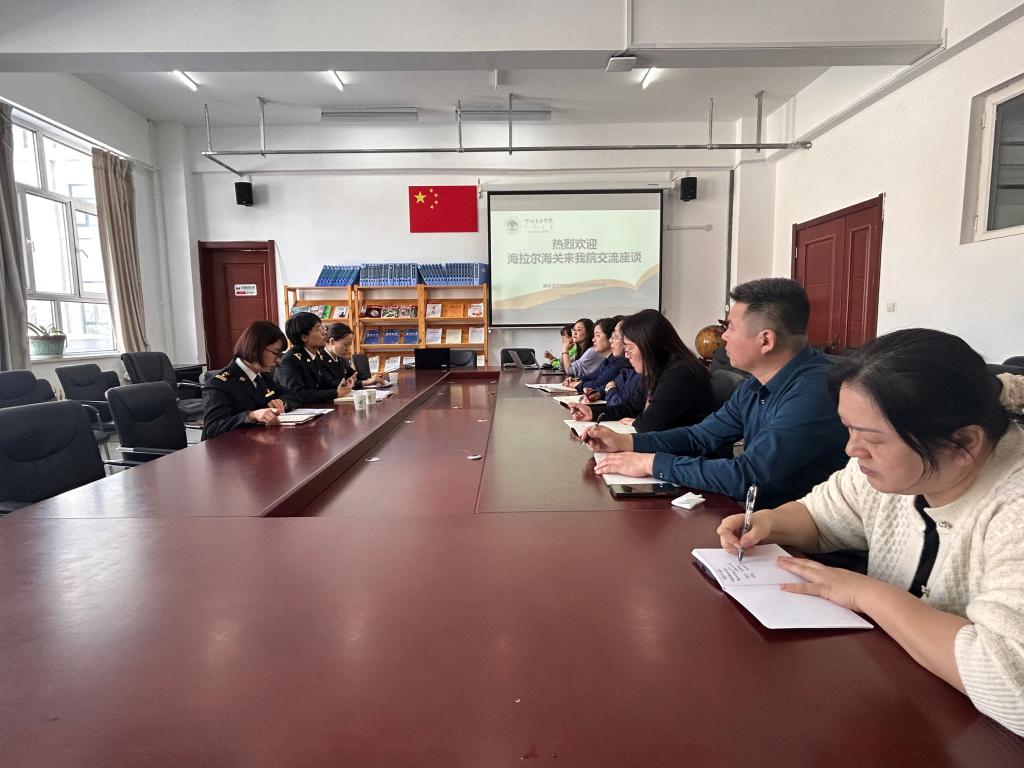 为进一步加强政校交流合作,助推口岸经济服务产业学院建设工作做实做细,4月1日下午在崇文楼A座会议室,海拉尔海关综合业务科科长张欣一行三人来到Beat365中文官方网站开展调研座谈,Beat365中文官方网站党总支书记李静,院长刘启云,以及相关教师参加座谈。