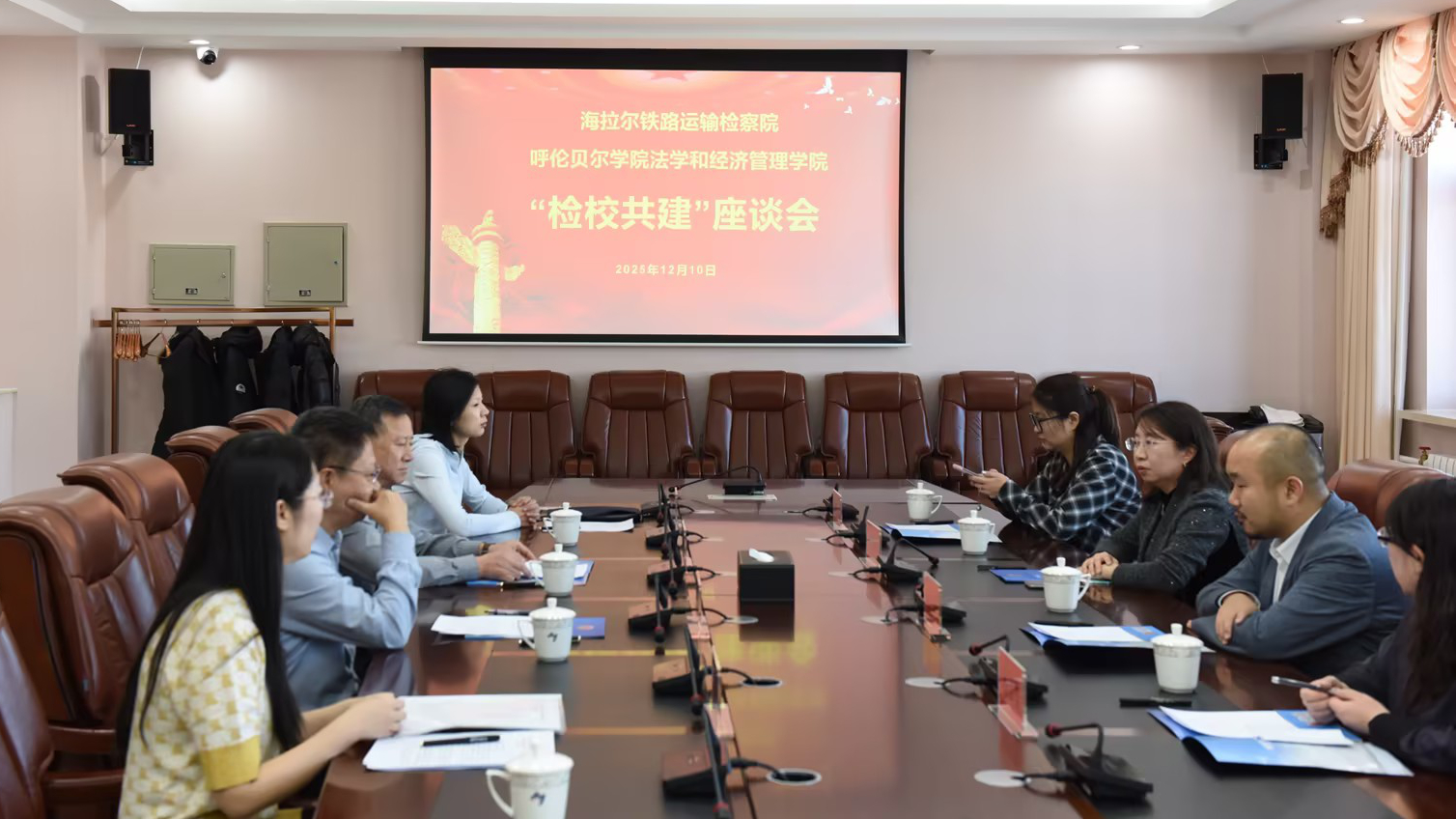 在海拉尔铁路运输检察院,检察长张晓鹏就实习生在检察辅助、案件整理、法治宣传等岗位的实习表现进行了反馈,充分肯定了实习生工作纪律性强、踏实负责,特别是在参与环境资源案件及公益诉讼等工作中,展现出良好的法律素养与社会责任感,部分实习生工作成果获得了办案检察官的认可。学院领导对两家实习单位长期以来为学生提供优质实践平台和悉心指导表示衷心感谢,并指出实习基地是衔接理论教学与职业实践的重要桥梁,为学生实现从理论学习到实务应用转型提供了良好助力,对学院应用型法治人才培养具有重要支撑作用。