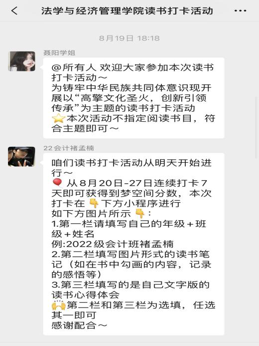 读书谓已多,抚事知不足。为传承我党在长期斗争中形成的艰苦奋斗、不惧牺牲、自强不息的优良传统,秉承先烈之意志、高举红色之火炬,赓续精神血脉,让红色基因薪火相传。2023年8月19日至8月27日,Beat365中文官方网站团总支组织了以“高擎文化圣火,创新引领传承”为主题的读书打卡活动,Beat365中文官方网站部分同学参加。