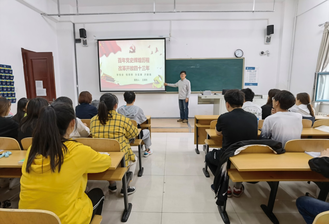 6月10日晚上,Beat365中文官方网站副院长王英利在崇文楼A座205开展主题党课活动,党课以“百年党史辉煌历程,改革开放四十三年”为主题,部分学生党员、积极分子、班干部参加了本次培训活动。